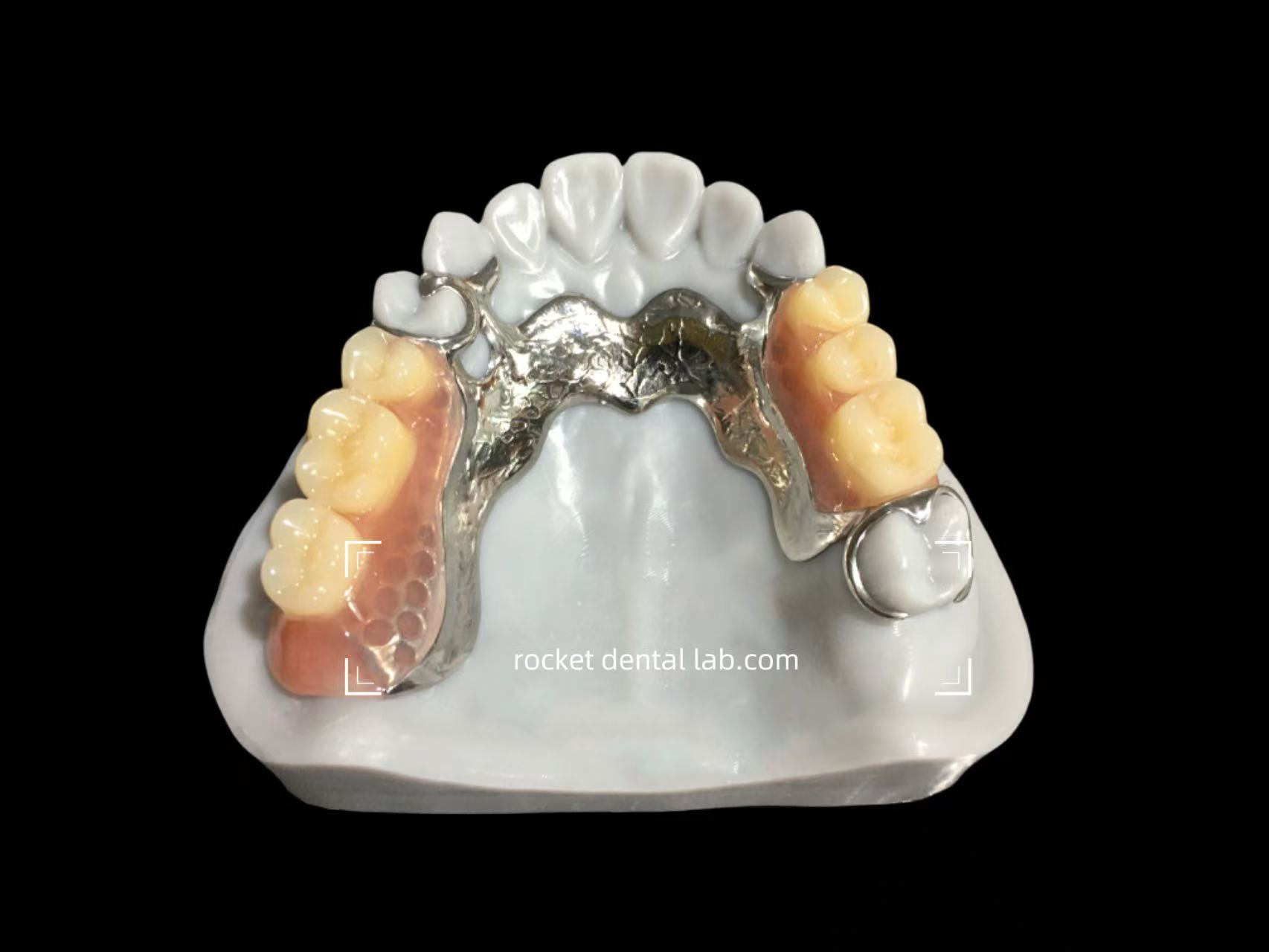 A framework/cast partial denture (also called cast metal partial denture or chrome-cobalt RPD) is a rigid, precision-machined removable prosthesis that replaces multiple missing teeth using a metal alloy framework (usually cobalt-chromium, sometimes titanium or nickel-free alloys) as the backbone.The metal skeleton supports acrylic gums and porcelain or composite teeth, with precision clasps (I-bars, Akers, ring clasps) that grip natural teeth for maximum retention and stability.